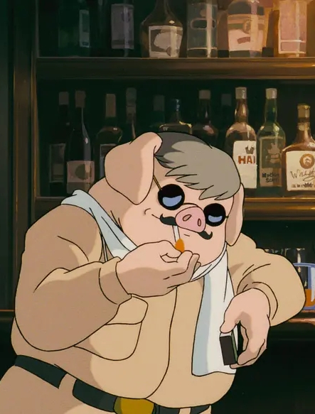 波鲁克介绍:波鲁克曾打算和吉娜结婚,但不久一战爆发了。吉娜所住的岛是奥地利的领土,波鲁克不能允许自己和敌国人结婚。他在对祖国的忠诚和对吉娜的爱中苦苦挣扎,最终还是选择了祖国。但当他目睹了同僚的死去,也包括吉娜的丈夫,他开始反思他这么做到底是对是错,这些矛盾盘旋在他的脑海中无法解决,最终,他变成了一头猪。