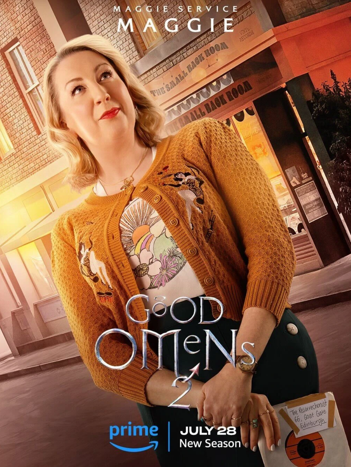 麦琪介绍:唱片店的老板,与尼娜关系很好,她的生意就在亚茨拉斐尔的书店旁边,并且拖欠了亚茨拉斐尔的租金。在大天使加百利突然出现之后,与尼娜一起帮助亚茨拉斐尔和克劳利解决天堂和地区派来的搜捕使者们造成的麻烦。