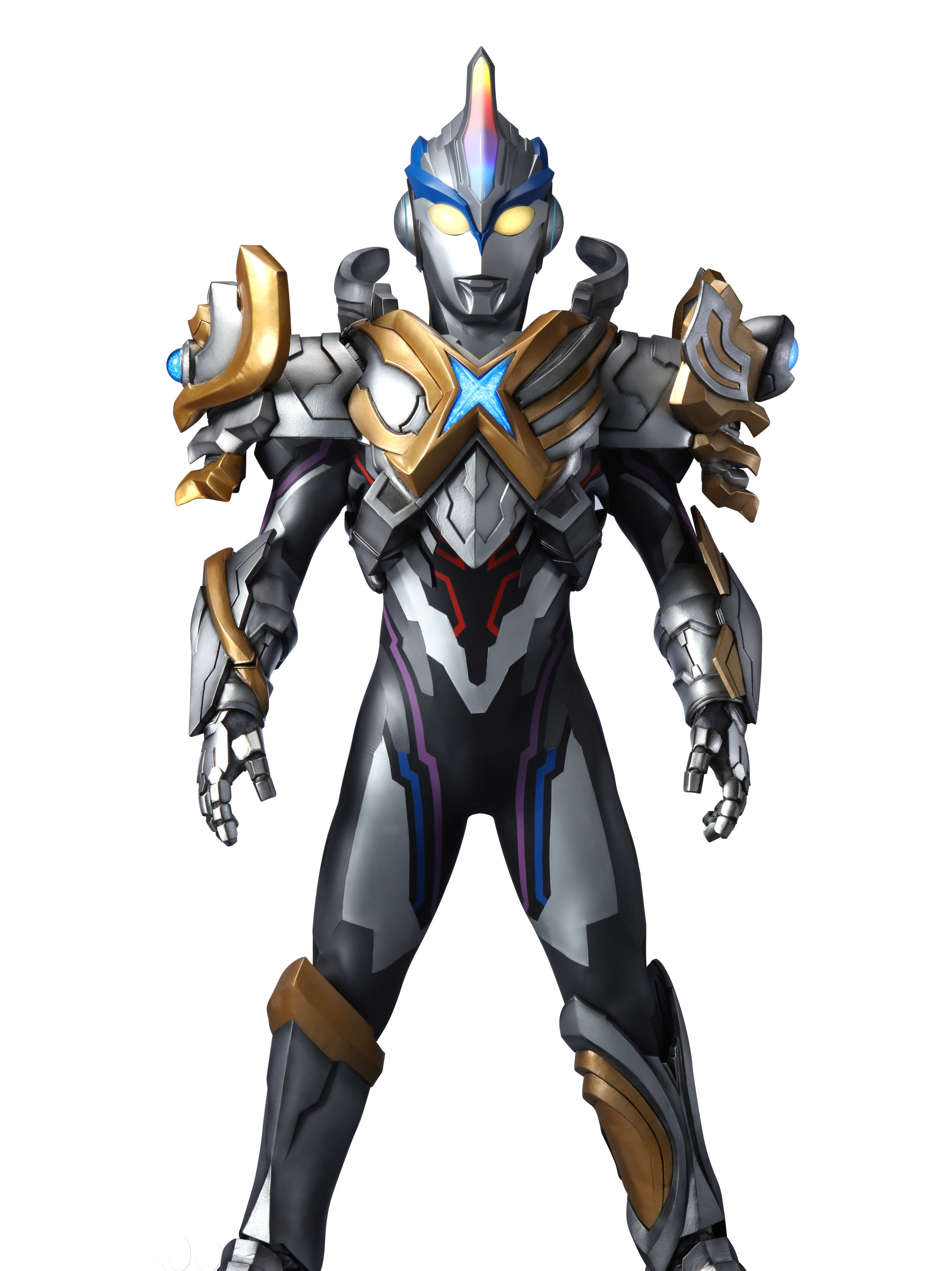 艾克斯奥特曼介绍:是由星球之力诞生的艾克斯奥特曼贝塔火花装甲。将初代奥特曼与迪迦奥特曼的力量变化为电子装甲装备在身上的无敌的究极形态。右肩为奥特曼,左肩为迪迦,武器为贝塔魔棒与神光棒融合而成的必杀剑——贝塔火花圣剑,也可以变成贝塔火花弓模式。