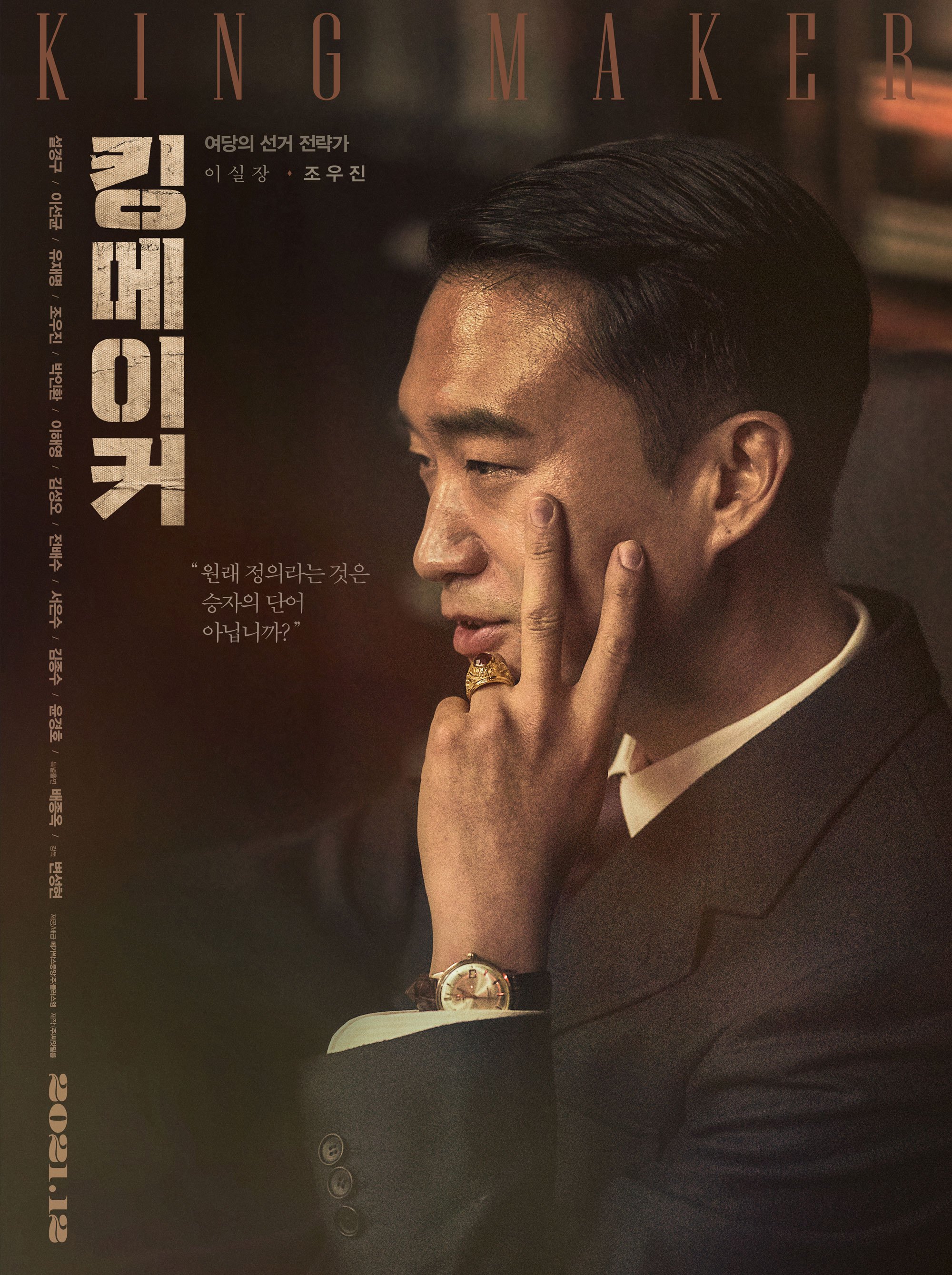 李室长介绍:为总统效力的执政党阵营选举战略家,有着精准的判断力和一丝苟的执行力,是个像蛇一样狡猾的人物。他密切关注在公众支持下逐渐增强影响力的在野党政治家金沄范,并发现了幕后军师徐昌台的存在,于是制定了新的策略应对。与徐昌台相信金沄的“大义”一样,他也相信着朴总统的“大义”。