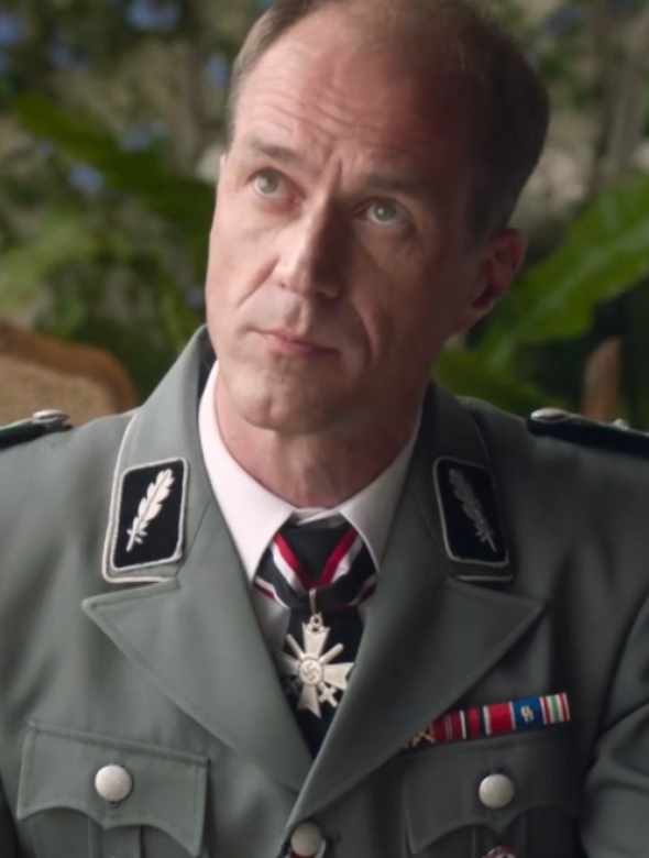 德国审查官介绍:纳粹德军的审查军官,对乔和莫里斯的身份感到怀疑,他一直认为这两个小孩就是犹太人,就用了一周的时间天天审问他们,还让莫里斯找自己的出生的证明。莫里斯带来了一位神父,但他看到了出生证明和神父的证言也不相信,便设计了一个陷阱来验证,结果兄弟俩识别出了这个圈套,他也只能无奈放人。