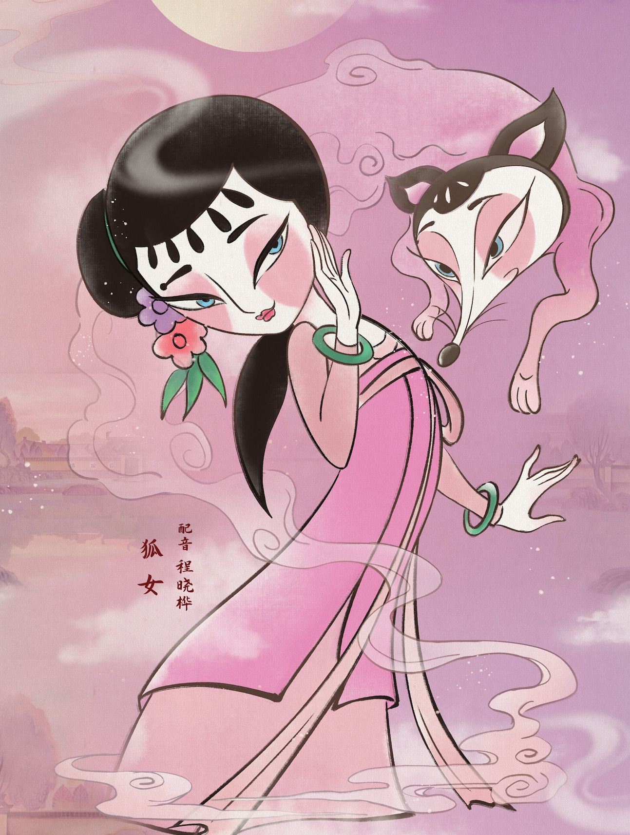 狐女介绍:狐狸幻化为人形的妖精。同老狐狸精以及独脚狐精一起盗得天书,学习天书法术,危害四方百姓,最后被袁公和蛋生处置。