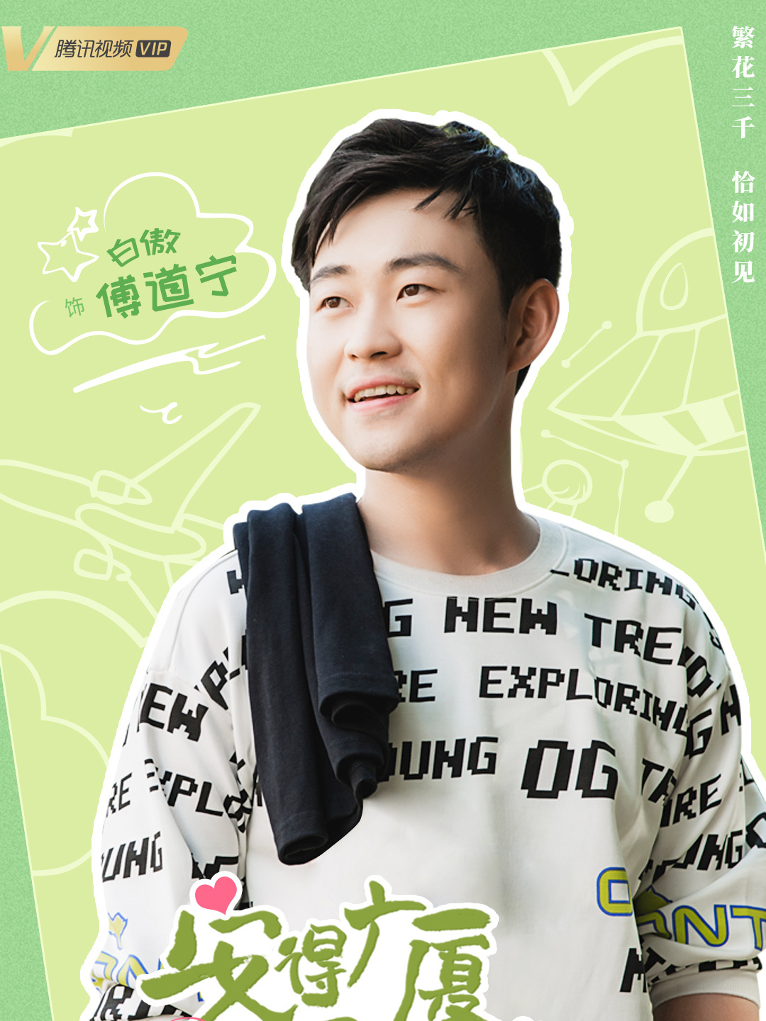 傅道宁介绍:相貌英俊,发型和衣服都很时尚张扬、喜欢穿亮色系的时尚休闲服,笑起来时帅气里透露着三分小坏和厚脸皮。
