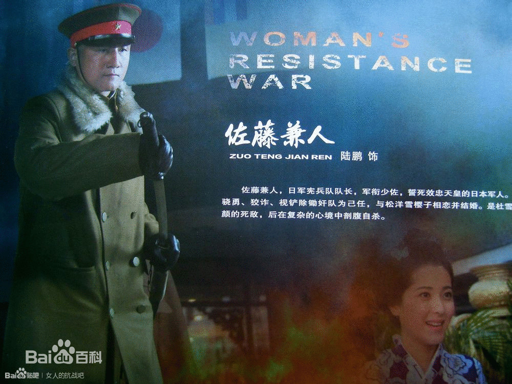 佐藤兼人介绍:日本宪兵队队长,军衔少佐,誓死效忠天皇的日本军人。骁勇、狡诈、视铲除锄奸队为己任,与松洋雪樱子相恋并结婚。是杜雪颜的死敌,后再复杂的心境中剖腹自杀。