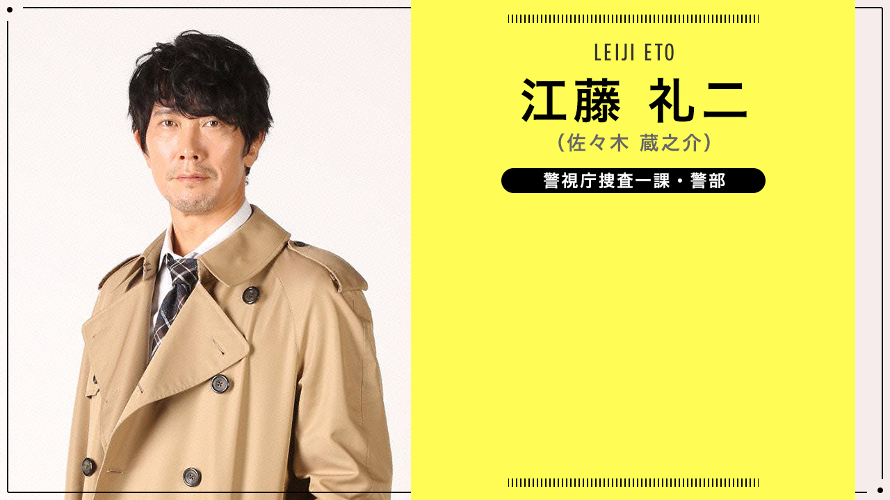 江藤礼二介绍:警视厅搜查一课警部,与狮子雄的关系是个谜。他比较顺利地出人头地,其实爱偷懒,自身不具备推理能力。但是,擅长巧妙地利用狮子雄查案,而且把狮子雄解决的案件当成自己的功劳。他肤浅的思考方法总是被狮子雄看不起,但他满不在乎,是个叫人讨厌起来而且有点可爱的人。