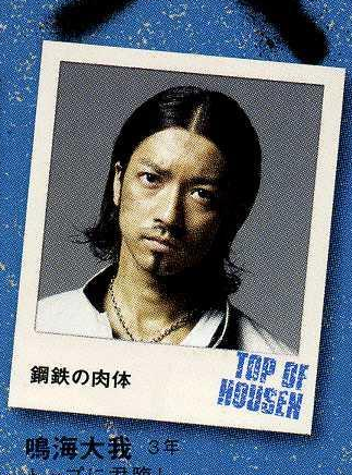 鸣海大我介绍:凤仙高校现任老大,有着钢铁般的肉体。企图违背“血之抗战”时期铃兰和凤仙立下的停战协定,侵入铃兰,对铃兰派出了“杀戮军团”。